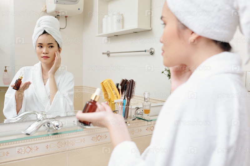 Женщина наносит увлажняющую эссенцию