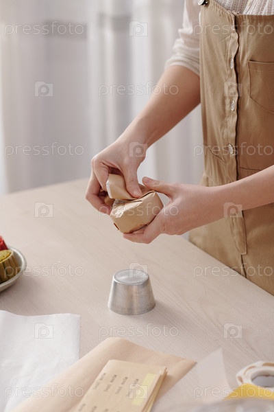 Женщина, упаковывающая лунные пироги, которые она испекла