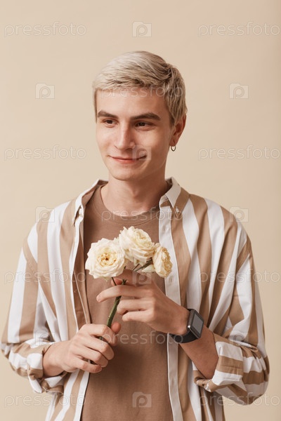 Женский молодой человек, держащий цветы