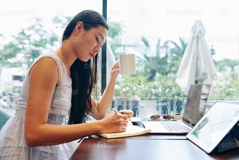 Серьезная бизнесвумен, планирующая заполнение