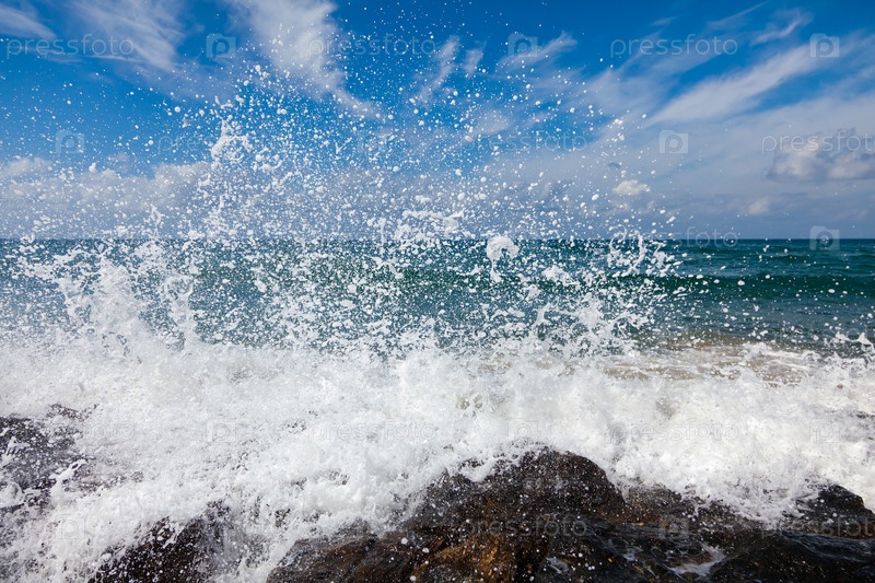 Брызги волн на морском берегу
