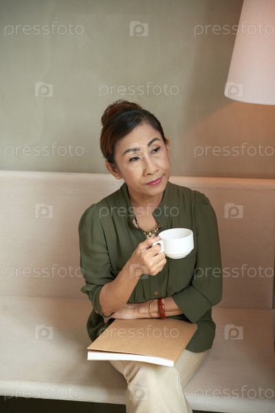 Старшая азиатская леди пьет кофе