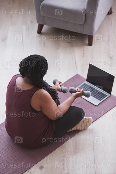 Афроамериканская женщина с избыточным весом, работающая