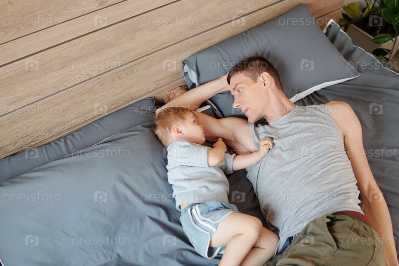 Отец с сыном отдыхают в постели