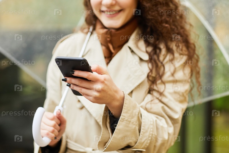 Молодая женщина со смартфоном на открытом воздухе