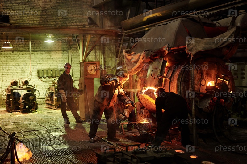 Плавление металла в большом литейном заводе