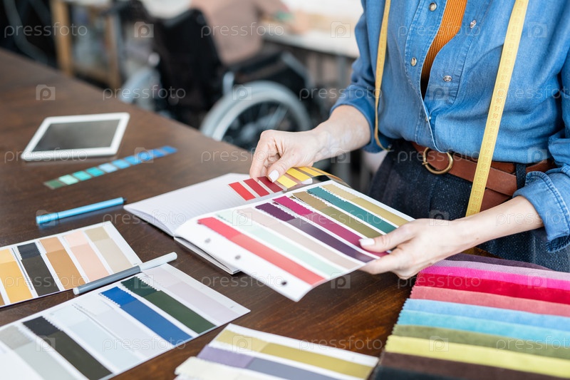 Молодой модный дизайнер выбирает цвета для новой коллекции