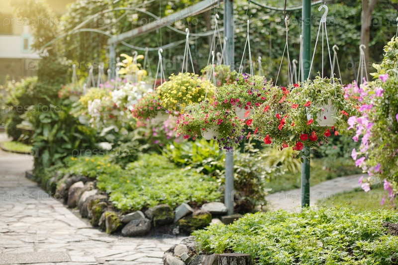 Цветки петунии в висячих горшках