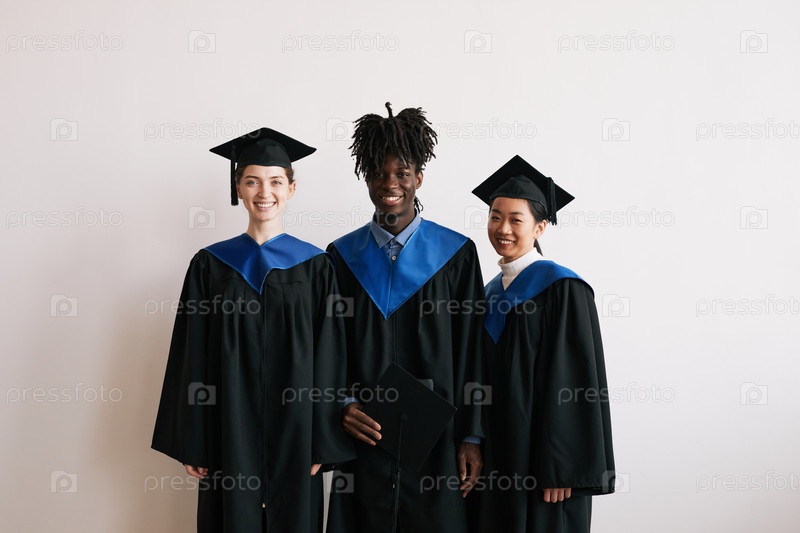 Улыбающиеся молодые люди, одетые в выпускные платья