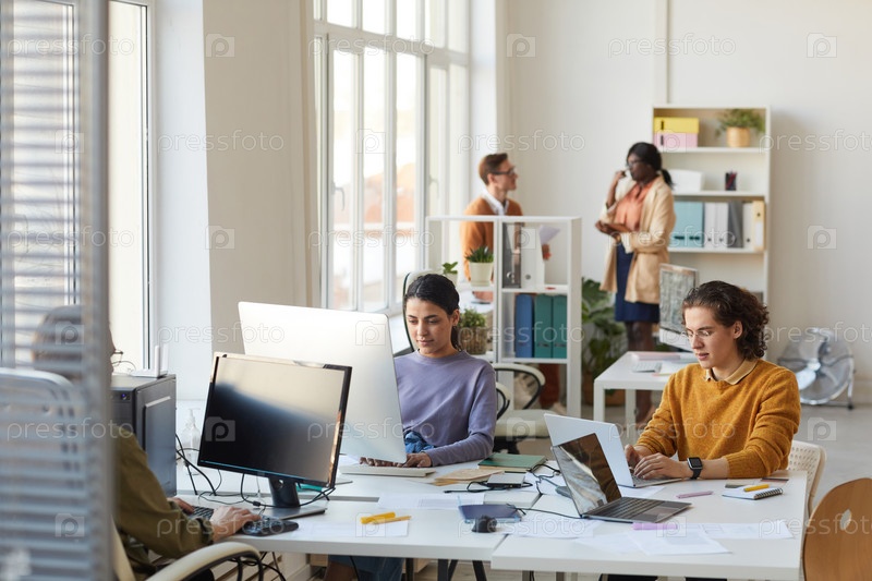 Молодые люди, использующие компьютеры в офисе Creative Young People Using Computers in Office