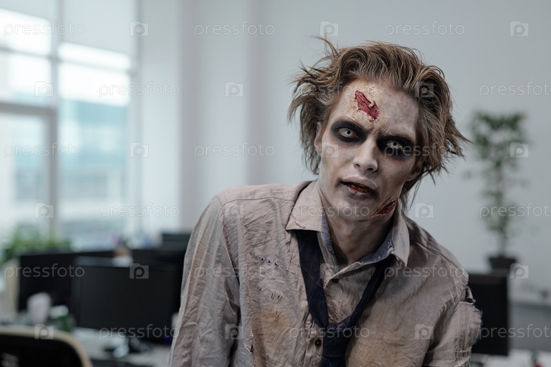 Уродливый мужчина с зомби-краской на лице