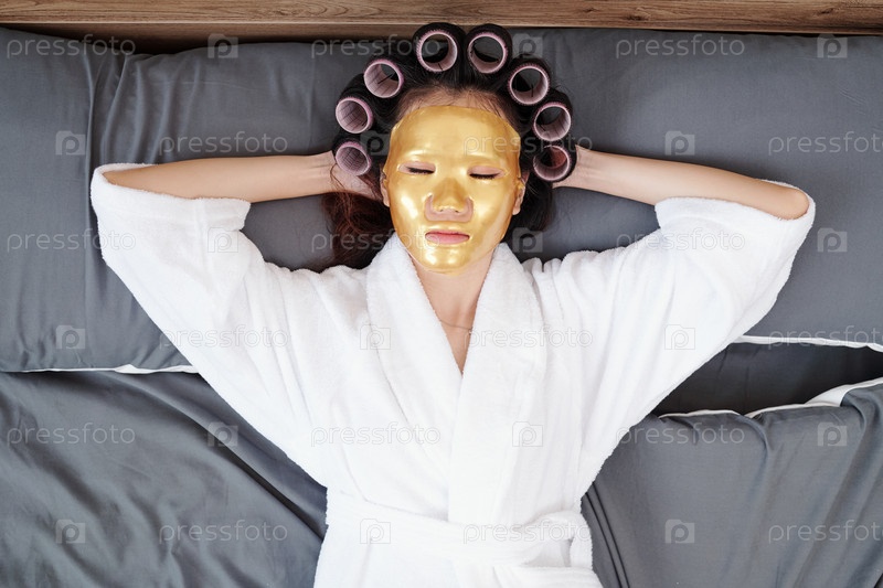 Женщина спит с маской на листе