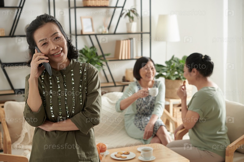 Позитивная пожилая женщина, разговаривающая по телефону