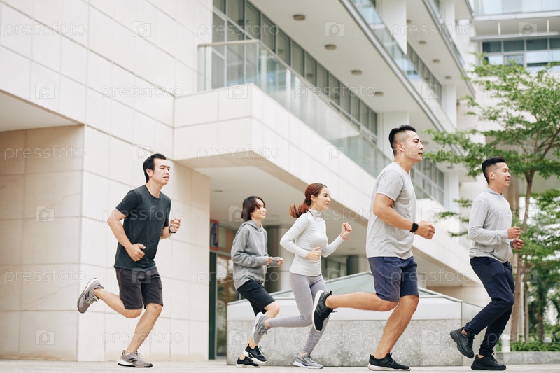 Люди тренируются для полумарафона