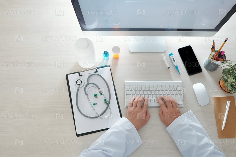 Врач общей практики работает на ноутбуке