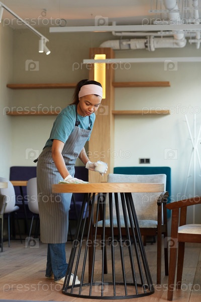 Официантка убирает стол в молодом кафе