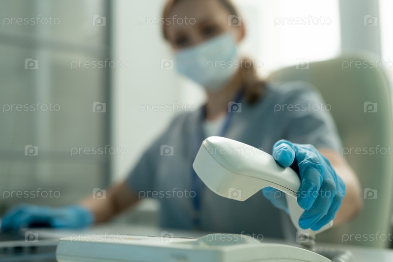 Лабораторный работник поднимает трубку