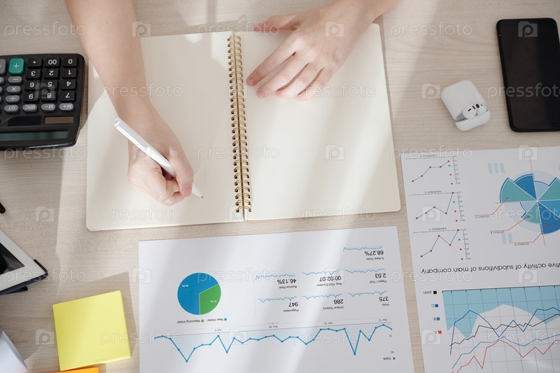 Деловая женщина, работающая с финансовыми данными
