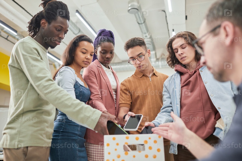 Студенты кладут телефоны в коробку