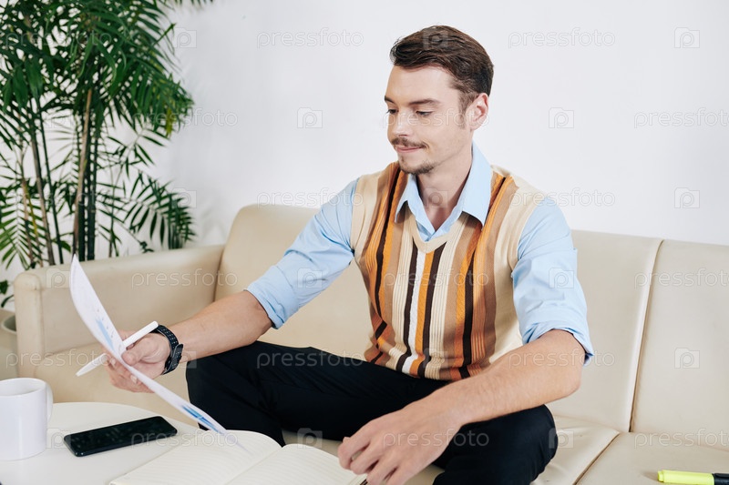 Скептический бизнесмен проверяет документы