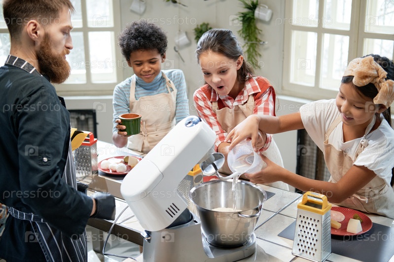 Дети готовят вместе на кухне