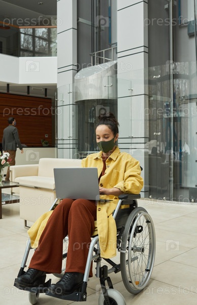 Инвалидная женщина, работающая на ноутбуке