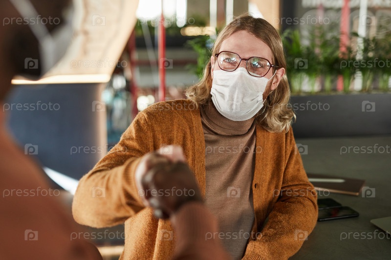 Коллеги делают Бесконтактное приветствие