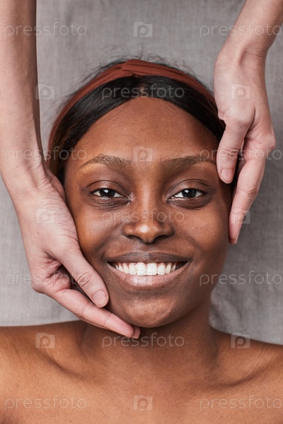Женщина, наслаждающаяся массажем лица