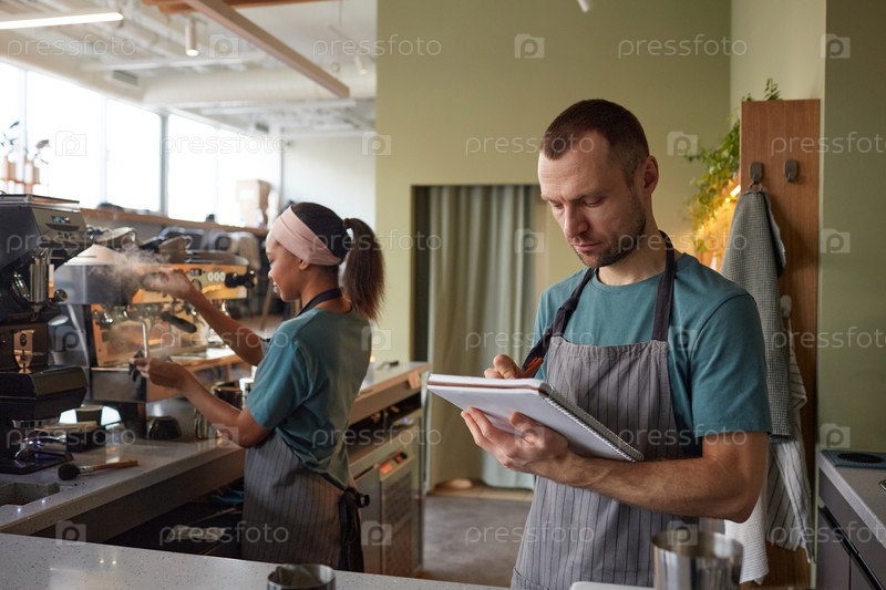 Официант делает инвентаризацию в баре