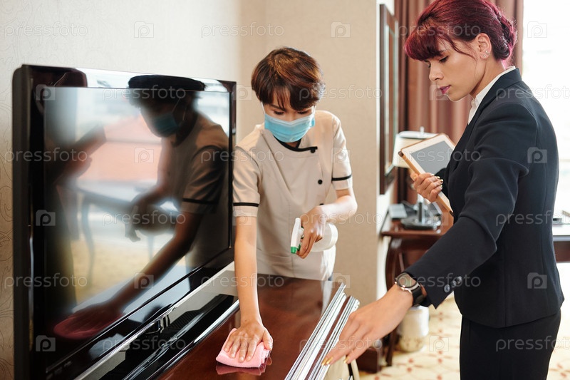 Менеджер отеля контролирует уборщицу