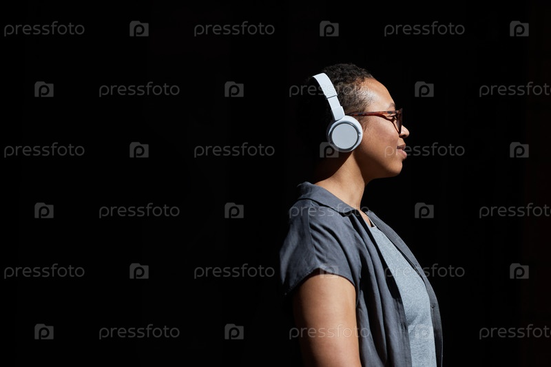 Женщина слушает музыку в наушниках