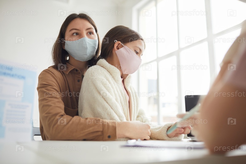 Молодая мать, посещающая врача в клинике