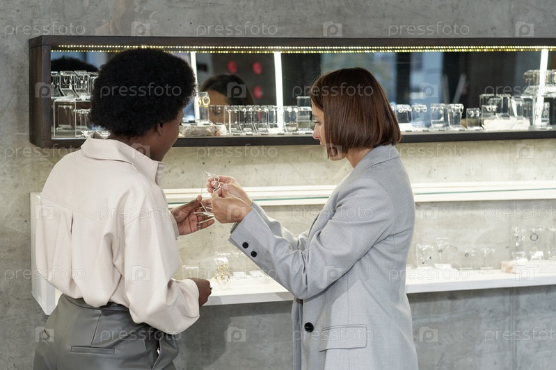 Молодая африканская женщина-владелец ювелирного бутика, консультирующий клиента