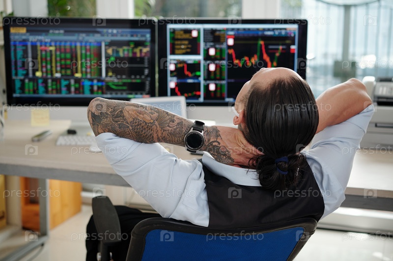 Трейдер, наслаждающийся счастливым днем трейдера