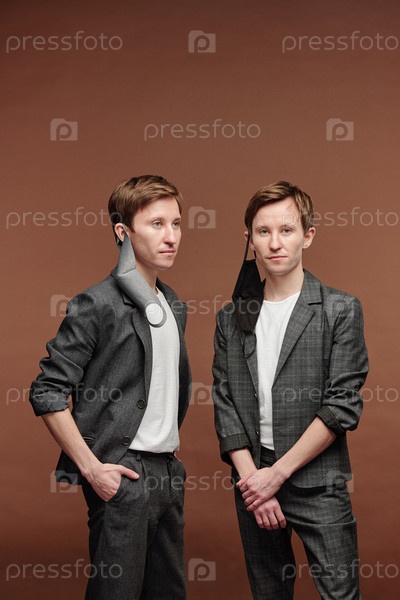 Уверенные в себе молодые подростки с масками, висящими на ушах