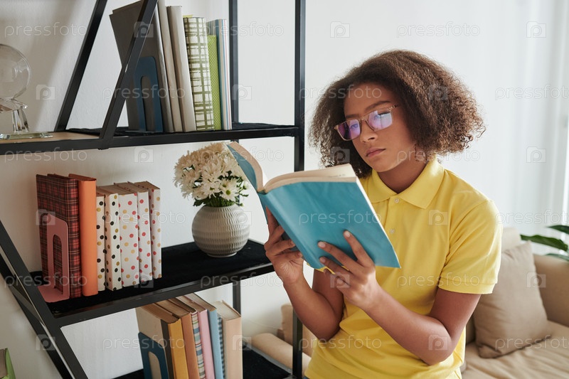 Девушка-подросток читает книгу в гостиной