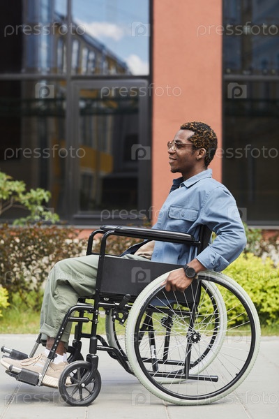 Улыбающийся афроамериканский инвалид с ограниченными возможностями