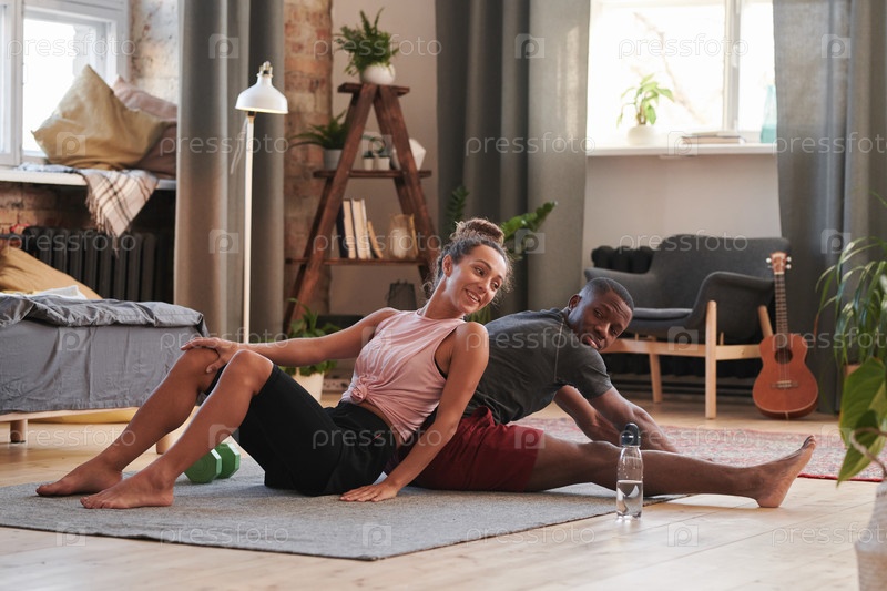 Пара, делающая вместе упражнения по растяжке