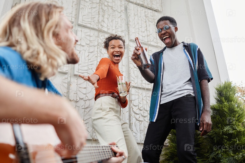 Друзья, наслаждающиеся вечеринкой на крыше