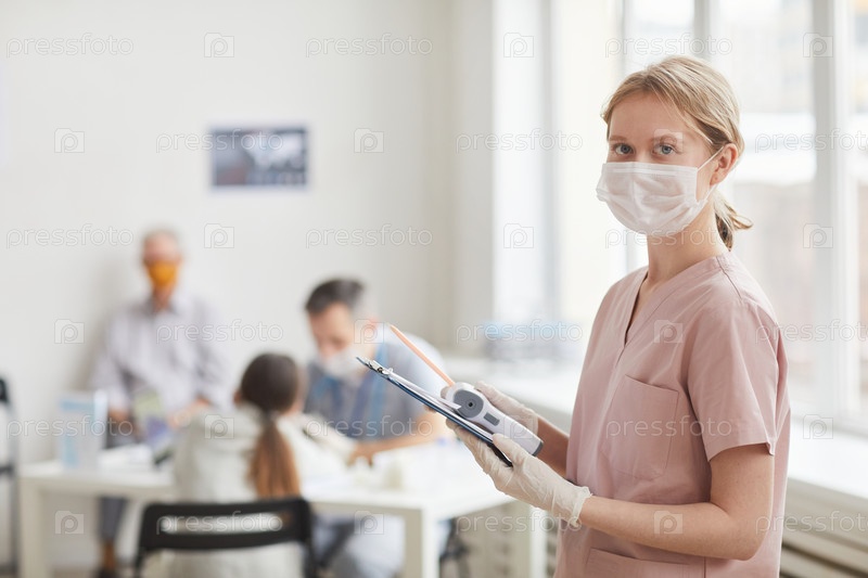 Медсестра позирует в зале ожидания