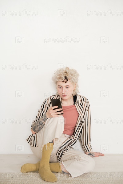 Женщина отдыхает с мобильным телефоном