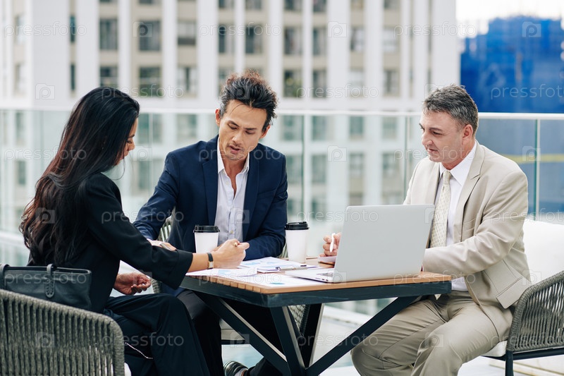 Бизнесмены обсуждают отчеты и предложения