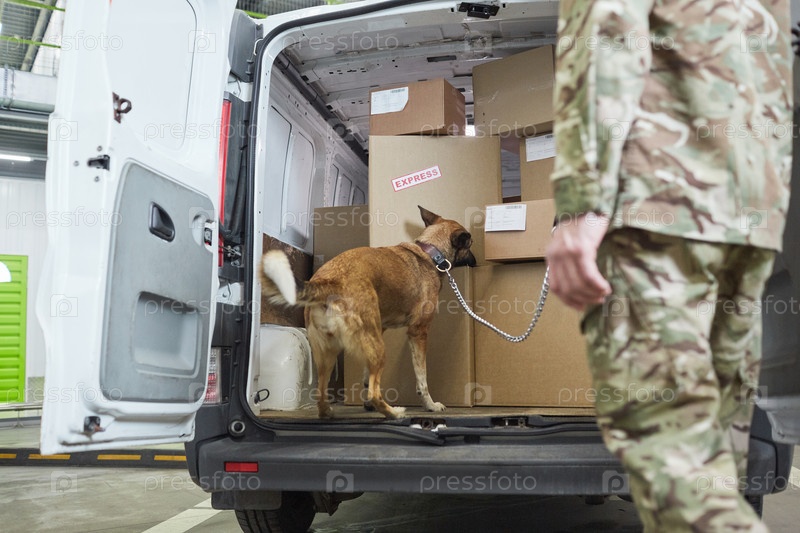 Военная собака проверяет груз