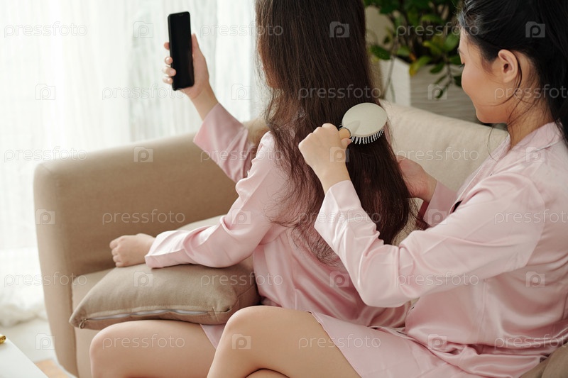 Чистить запутанные волосы подруги женщины