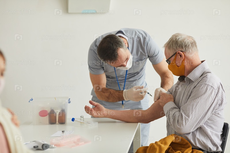 Старший мужчина, прививающийся от коронавируса