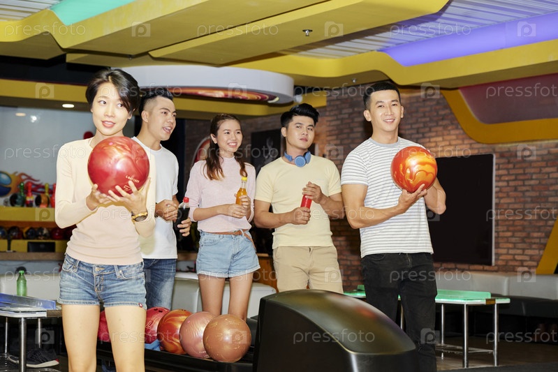 Друзья играют в боулинг