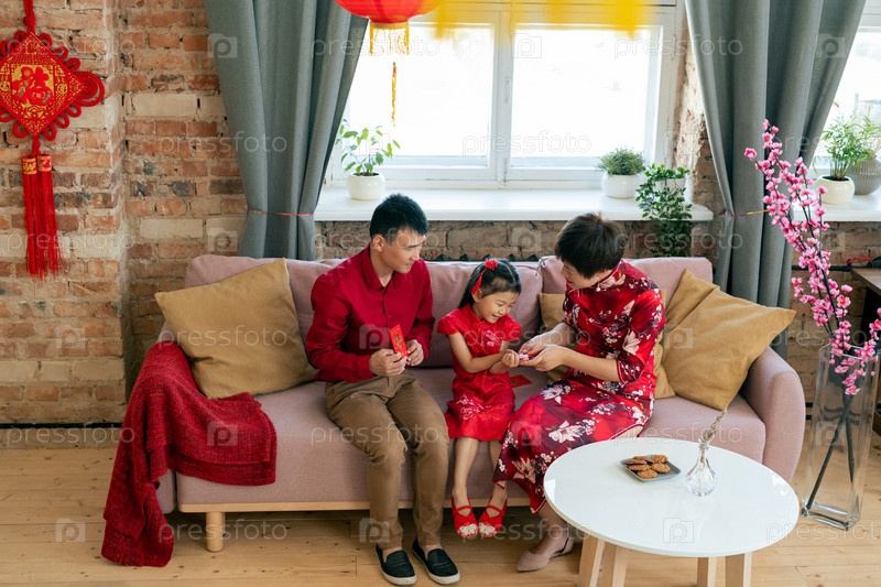Азиатская семья в традиционной одежде