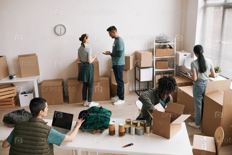 Разнообразная группа волонтеров на мероприятии пожертвований