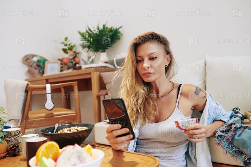 Женщина читает новости онлайн