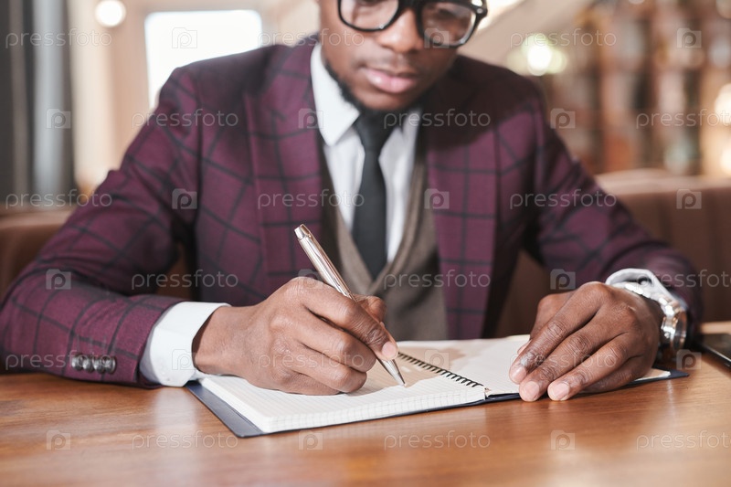 Бизнесмен пишет планы в блокноте